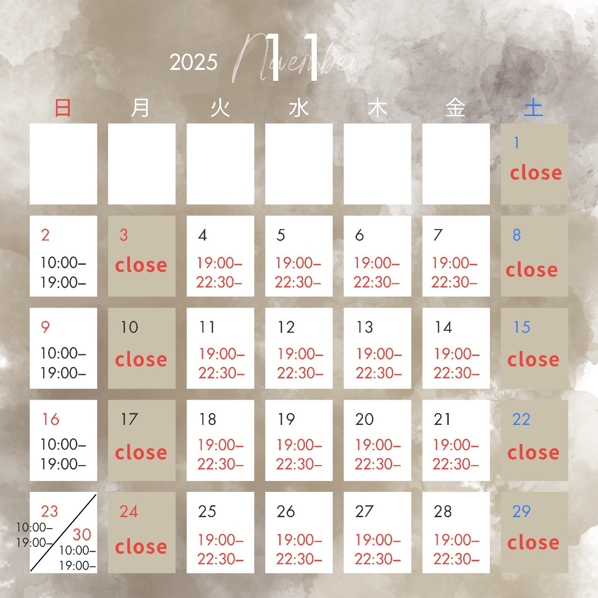 【11月カレンダー】