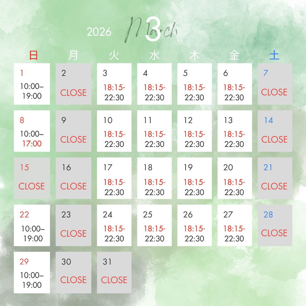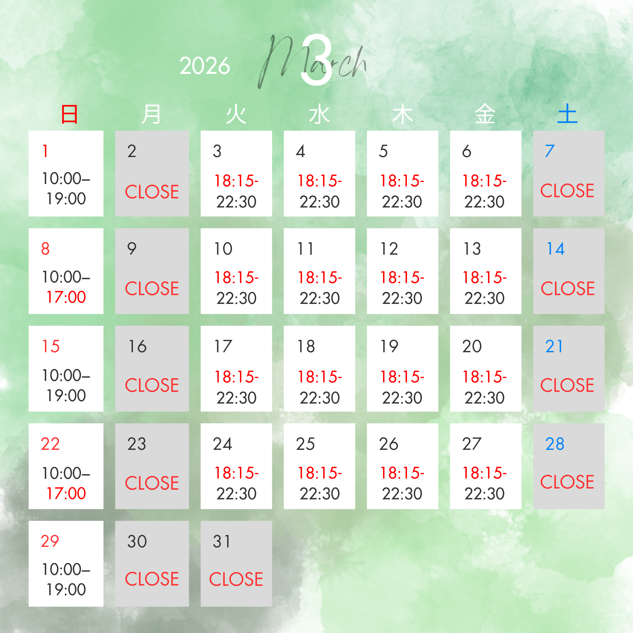 【3月カレンダー】